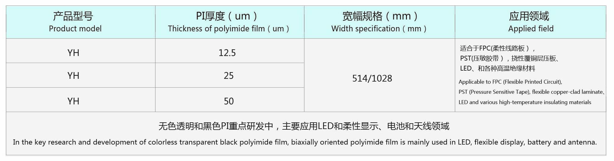 我公司主要產(chǎn)品為雙向拉伸聚酰亞胺薄膜,除具有傳統(tǒng)PI所具有的熱 性能和絕緣性能外還具有優(yōu)良的尺寸穩(wěn)定性、強(qiáng)度高等特點(diǎn)。